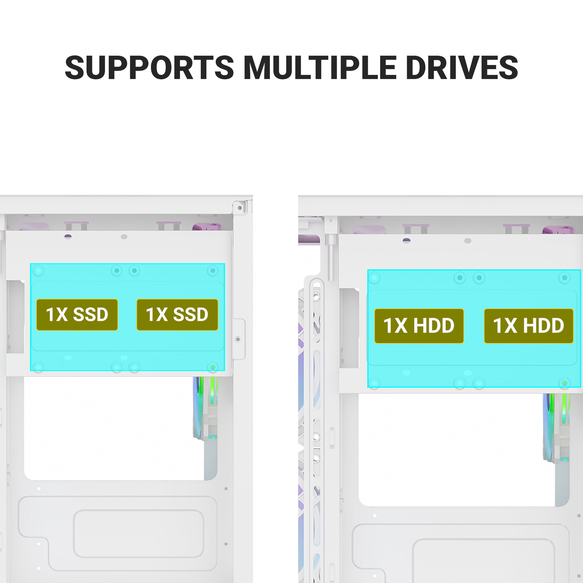 Supports dual radiators (up to 240 mm top / 120 mm rear)