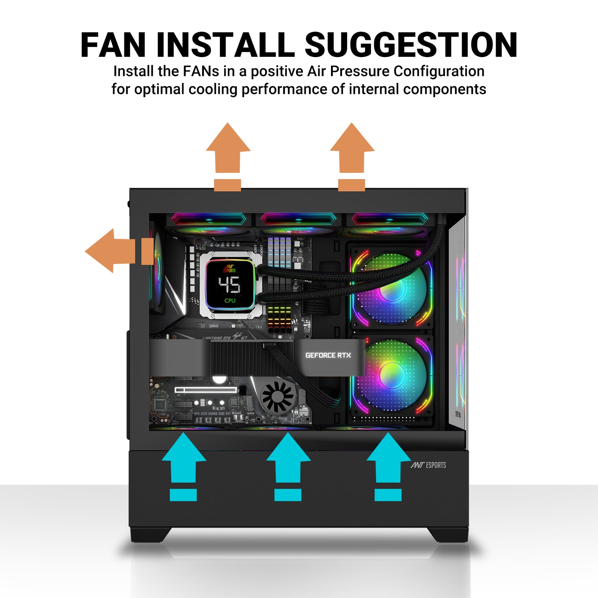 Pre-installed 2 side fans + 1 rear fan for efficient cooling