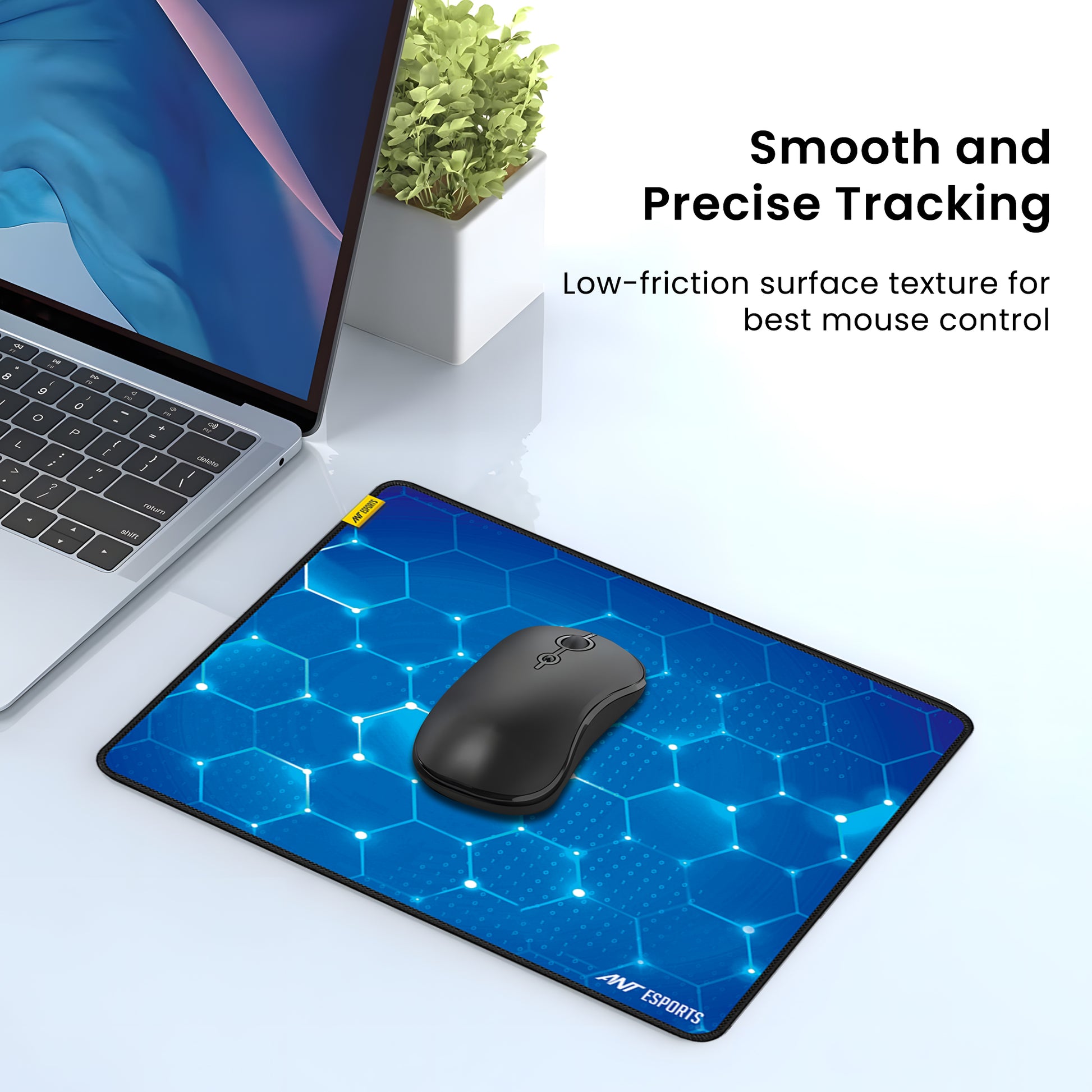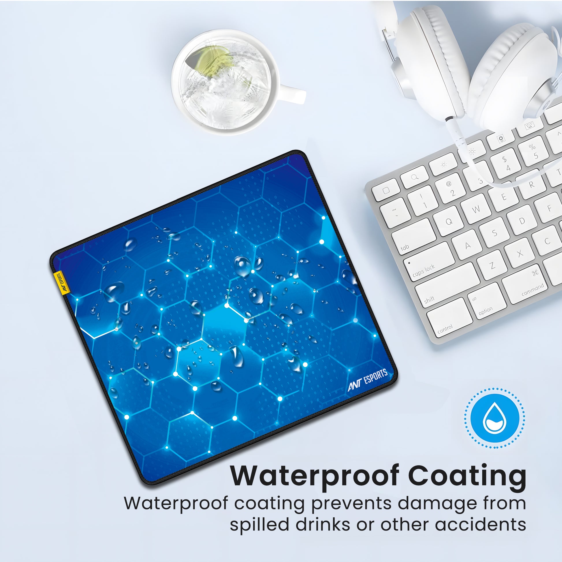 Ant Esports Hexa Mouse Pad 260X210X3mm Anti-fray Stitching, Waterproof Surface & Non-Slip Rubber Base Stitched Edges Gaming Mouse Mat for Laptop, Compatible with Laser and Optical Mice – Blue Hexagon