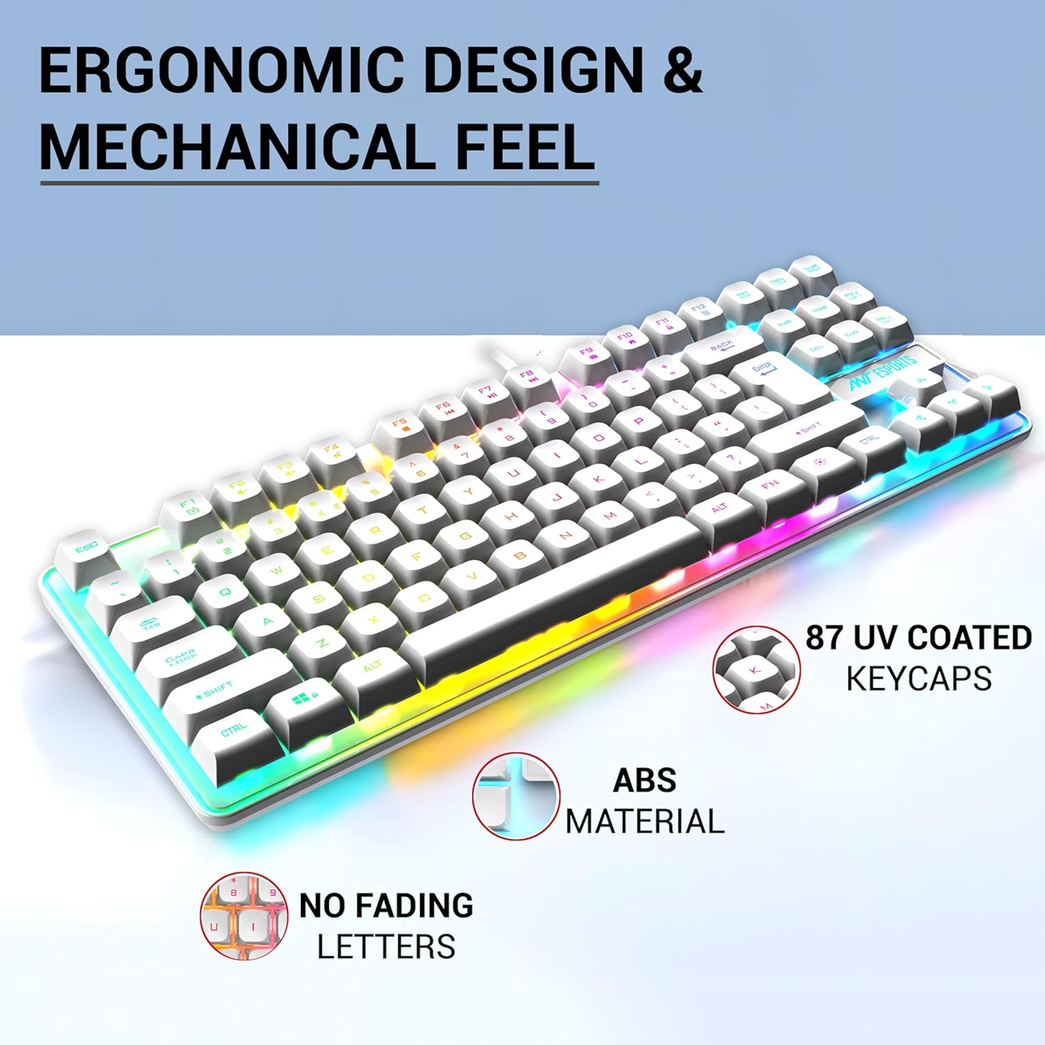 Compact TKL RGB Gaming Keyboard + High-Precision RGB Mouse Combo in a premium white finish.