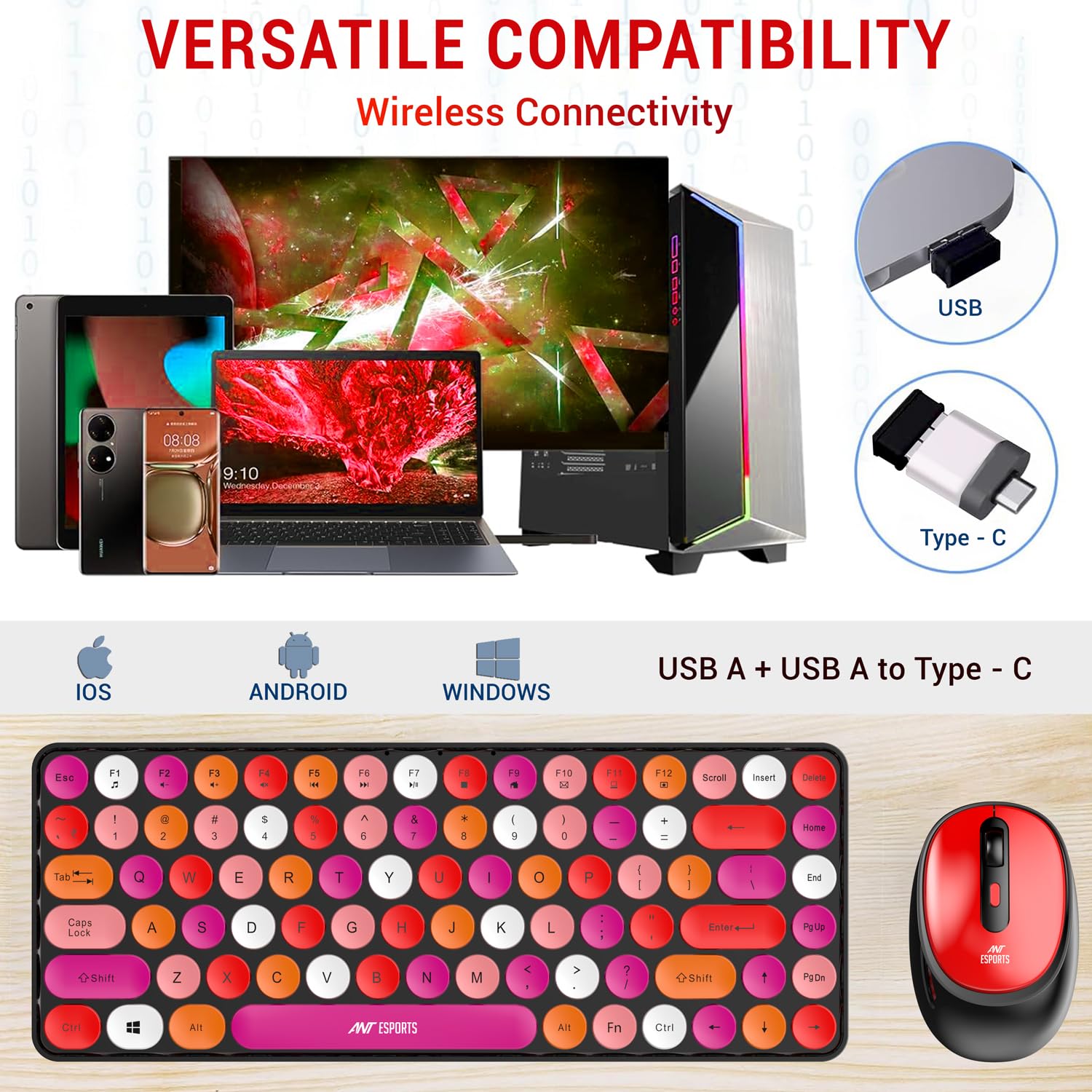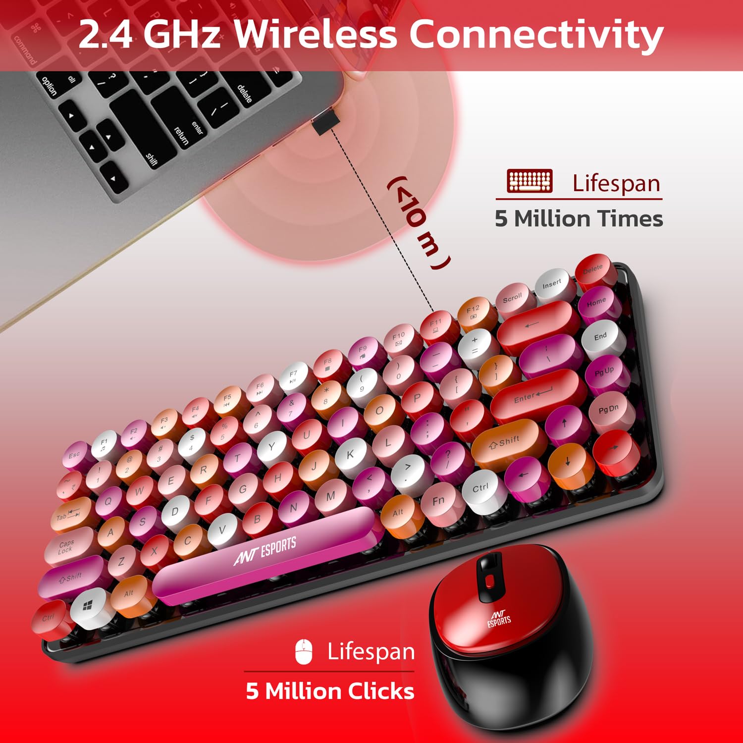 Ant Esports WKM33 Wireless Retro Keyboard and Mouse Combo – Cherry Red